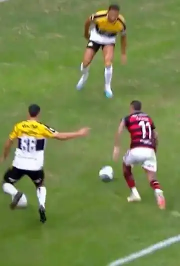 Una de las jugadas más extrañas de la historia del fútbol se dio este sábado 20 de julio en una nueva fecha del Brasileirao, en el encuentro entre el Flamengo y el Criciuma. Sucede que sobre el final del partido, como se ve en el video, Everton (11) del Flamengo, ingresaba al área rival con pelota dominada pero, por esas cosas insólitas, había otro balón allí mismo.