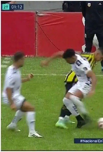Apenas saltaron los equipos al césped para jugar el segundo tiempo, no conforme con la pinturita de la primera mitad, Pomelo iba a realizar otra acción digna del número que porta en la espalda. Cerca de la línea lateral, aguantando la pelota, tiro un caño de espaldas que nuevamente volvió a sufrir el defensor central del conjunto Cervecero.