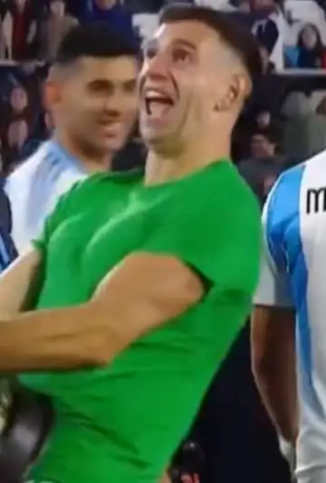 Pero lo que no podía faltar era ver a Emiliano 'Dibu' Martínez con su polémico y ya clásico festejo, donde esta ocasión la victima fue la Copa América para la alegría del público y de sus compañeros también que estallaban de la risa al ver las locuras del arquero argentino.