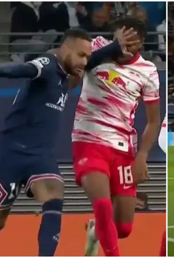 El partido entre RB Leipzig y Paris Saint Germain empezó con la temperatura bien alta. Neymar se mostró fastidioso desde el principio y el local, le hizo sentir el rigor de la localía con la pierna fuerte. De hecho, en una jugada, Nkunku fue a presionar a Neymar y el brasileño respondió poniéndole la mano en la cara, casi pegándole un cachetazo.