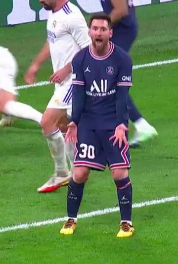 %uD83C%uDDE6%uD83C%uDDF7 %uD83D%uDC40 La imagen de Messi señalando la acción tras acabar la jugada.#RealMadridPSG #UCL