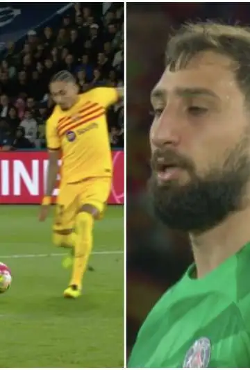 ¿QUÉ HIZO DONNARUMMA? El arquero y un manotazo errado, que terminó en gol: Raphinha lo aprovechó y le dio el primero a Barcelona.
