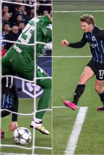Szczesny recibió un pase atrás, sobró la jugada, quiso eludir al delantero del Brujas que fue a presionarlo y acabó de la peor forma. Vermant se lanzó por la pelota, logró quitársela y tras ello definió con el arco vacío porque Szczesny estaba en el suelo.