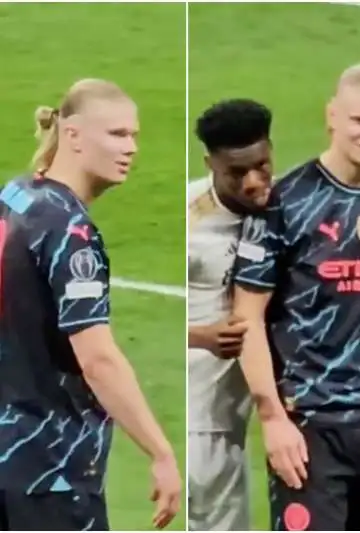 En cada momento que tenía que marcar a Haaland, el francés trataba de tomarlo con los dos brazos, apoyaba su cabeza en el hombro y le sacaba la lengua. La imagen fue captada desde la tribuna y en este caso, Haaland se lo tomó con cierta gracia, aunque con el correr de los minutos, el noruego fue tocando cada vez menos el balón.