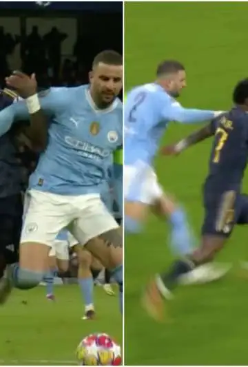 El delantero del Real Madrid no tuvo mejor idea que intentar ganarle en velocidad a Kyle Walker y terminó humillado. El defensor del Manchester City es considerado el más veloz del mundo y lo dejó claro en esta jugada. Walker partió detrás de Vinicius, pero así y todo, logró alcanzarlo, cubrir el balón y dejárselo a Ederson.