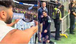 Finalmente, la seguridad llegó para capturarlo mientras abrazaba al jugador y fue detenido en el recinto.