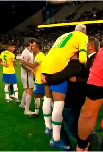 Lo curioso es que no solo evadió a toda la seguridad, sino que también terminó levantando a Neymar que se encontraba sorprendido por la situación.