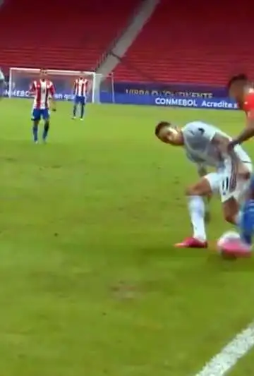 En una salida rápida, Arzamendia se enfrentó a Di María por el lateral derecho, quien se le plantó sin suerte, ya que el jugador de Cerro Porteño le aplicó el bello recurso, pasó el balón por entre las piernas del rival y siguió.