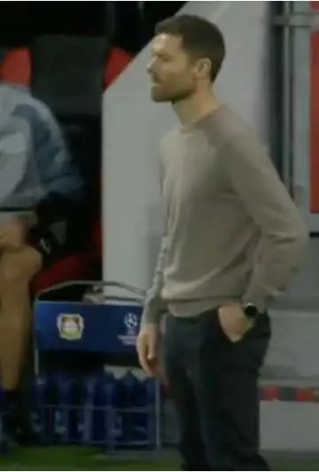 De forma idéntica como cuando jugaba y sin sacar la mano de su bolsillo, Xabi Alonso controló el balón de forma perfecta y se lo dejó servido en las manos al futbolista para que haga el saque lateral. Xabi Alonso siempre se destacó por la calidad, el control y la técnica que tenía para jugar al fútbol y evidentemente, todavía la mantiene.