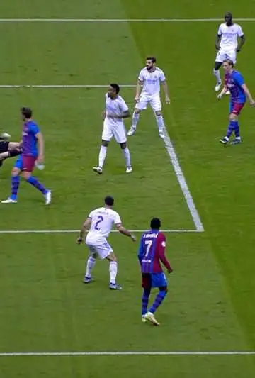 Dembélé centró, Militao quiso sacarla y de un rebote De Jong batió a Courtois y empató, en una jugada que no llevaba mucho peligro. Al término de la primera mitad se fueron igualados en un gol.