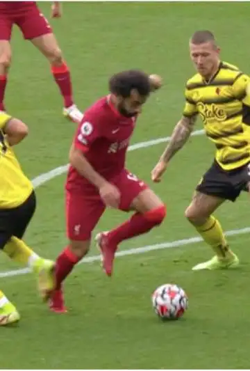 Al minuto 53, Salah tomó el balón y se vio rodeado de tres futbolistas del Watford. El 11 del Liverpool se escapó de los tres con una pisada descomunal, que dejó descolocado a los rivales que buscaban frenarlo.
