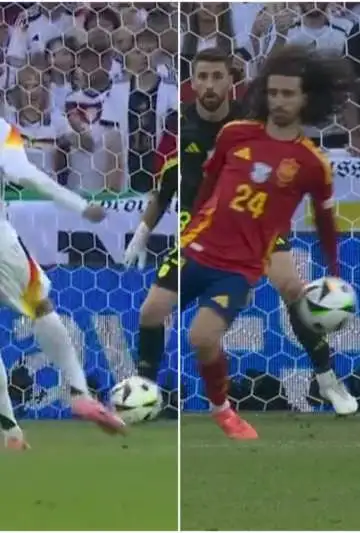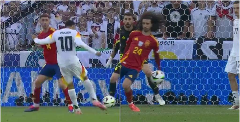 A los 105 minutos de juego, el 10 de Alemania, Jamal Musiala remató al arco español desde afuera del área y el balón pegó en la mano de Cucurella. De haber sido sancionada la infracción, la historia pudo haber cambiado para el anfitrión, que terminó siendo eliminado por el gol de cabeza que hizo Merino a los 118' para poner el 2-1 final.