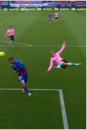 El balón le quedó alto a Griezmann y decidió definir con una tijera de zurda. El disparo fue cruzado y viajó directo al ángulo, siendo inatajable para el arquero rival.
