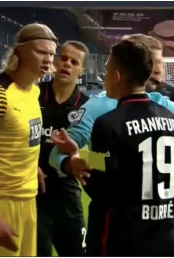 El noruego se llevó la pelota al corner para dejar pasar el tiempo, Borré llegó a darle tres patadas y terminaron cara a cara, con el delantero del Dortmund pidiéndole al colombiano de pelear mano a mano. "Qué pasa hermano", fue la frase de Haaland a Borré, que fue amonestado y terminó perdiendo el partido.