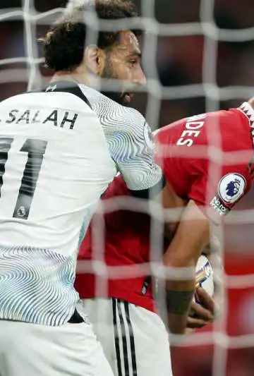 ¡Qué momento! Salah metió el 1-2 y se peleó con Bruno Fernández. El egipcio estaba apurado pero el portugués del United quiso evitar que todo se haga más rápido.