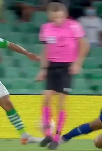 En un intento por quitarle el balón a un rival del Betis, Casemiro se fue al puso con todo y derribó al árbitro. Iban 57 minutos de juego y el partido todavía era empate sin goles. Por suerte, el juez, Fernández Fernández, se lo tomó bien.