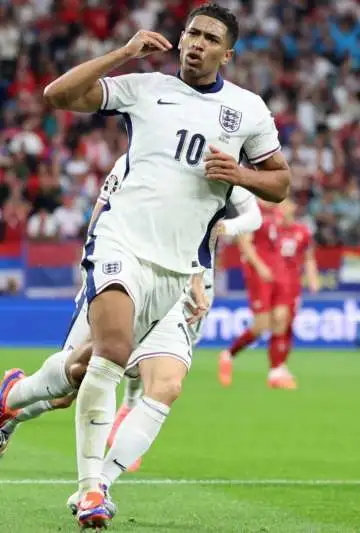 Fue la estrella del Real Madrid quien anotó el gol de Inglaterra. Es en el equipo blanco donde ha demostrado su capacidad para marcar goles, incluso siendo centrocampista. Un centro desde la derecha de Bukayo Saka, que fue creciendo en el primer tiempo hasta convertirse en uno de los más destacados del equipo inglés, desvió al tocar en un defensor serbio, y ahí apareció Jude Bellingham para rematar de cabeza como un verdadero '9', poniendo el 0-1 para Inglaterra a los 12 minutos. Los más de 14,000 aficionados británicos que llenaban el estadio del Schalke 04 comenzaron a cantar "Hey Jude".