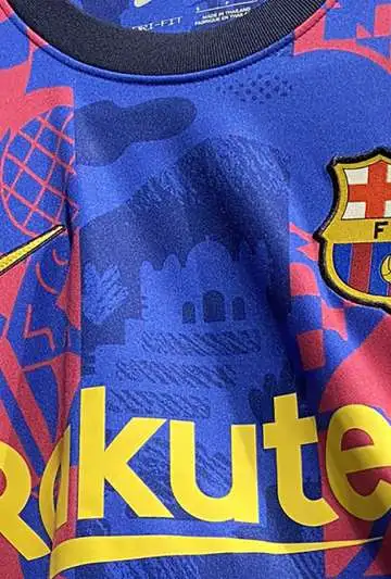 Completan el look un cuello redondo en negro como así los puños y el amarillo tirando a ocre que tiene el sponsor Rakuten, como así el logo de Nike y parte del escudo. Después de la decepción que supuso el modelo titular, se espera que esta camiseta sea mejor recibida.