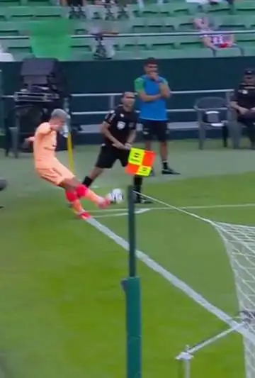 Griezmann le pegó desde el saque de esquina y la pelota hizo el trayecto curvado y se metió en el fondo del arco, pese al intento del portero y de otro jugador, ambos del Betis, de frenarlo.