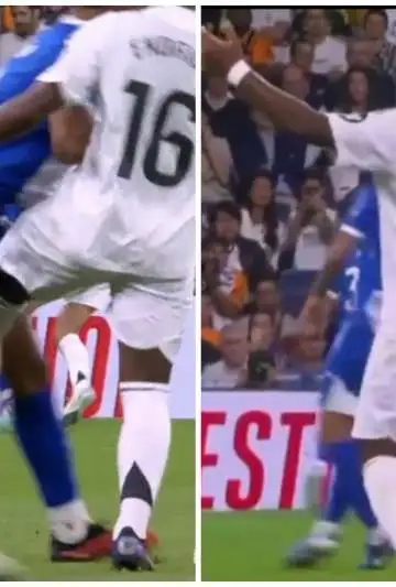 Sin siquiera estar cerca de la jugada, el brasileño estaba siendo marcado por Hugo Novoa y el uruguayo Alvaro Mouriño. Endrick parece intentar pasar al defensor charrúa con la intención de progresar y ser una opción en ataque, pero su forma de querer sacarselo de encima fue directamente buscandolo para propiciarle un rodillazo que apuntó a los testículos del futbolista de Alavés.