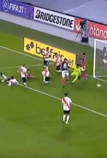 Es que el mediocampista devenido en arquero se encuentra lesionado del isquiotibial tras el Superclásico ante Boca y minuto a minuto su físico empeora en el encuentro.