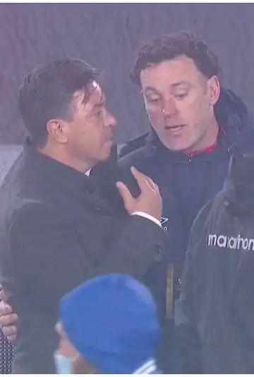 En el segundo tiempo, el entrenador de Argentinos Juniors protestó por una falta de Fabrizio Angileri y pidió amarilla, lo que molestó a Gallardo: "No te quiero escuchar más".
