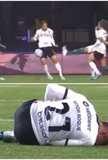 La pata de Murilo Cerqueira fue realmente muy fuerte, dejó con mucho dolor al juvenil Vitor Roque, de tan solo 17 años, con gran dolor, pero por suerte, no sufrió ninguna lesión de gravedad y pudo continuar en el campo.