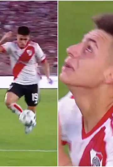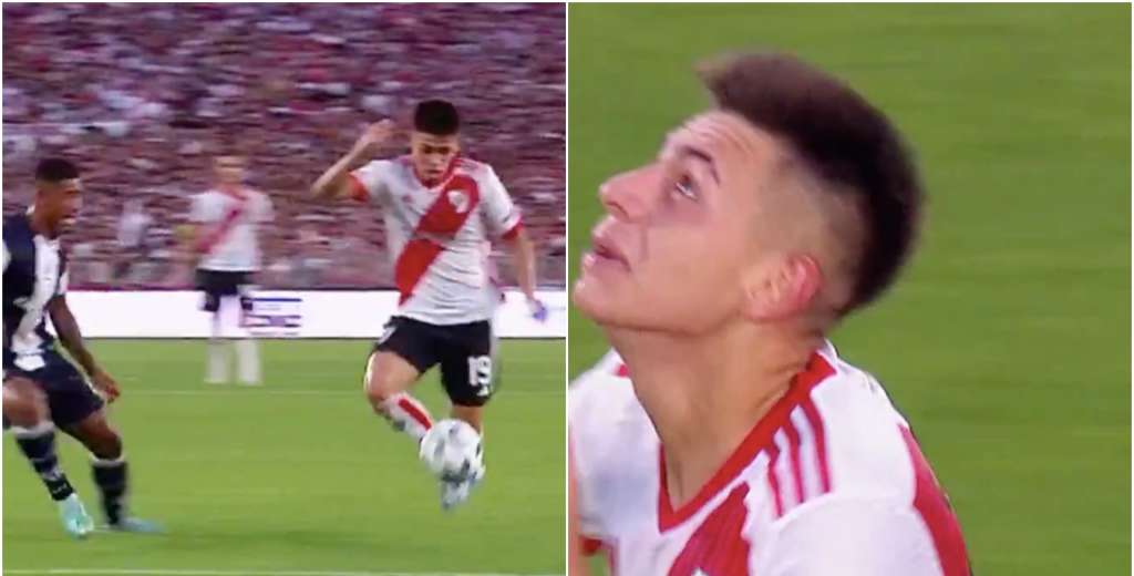 Con el resultado en contra por 1-0, y con la gente de River Plate algo impaciente, Echeverri recibió al borde del área grande, encaró, se sacó un par de rivales de encima y definió con un zurdazo demoledor al ángulo, teniendo en cuenta que es diestro.