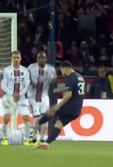 El Paris Saint-Germain FC había empezado mal el duro partido contra el Niza, incluso de local. Los visitantes dominaban con el control de balón y exigían a la defensa parisina. Messi y Neymar aparecían poco, hasta que de a poco se fueron acercando al arco que defiende Kasper Schmeichel. Y tras un intento fallido, llegó el primer gol de tiro libre de Messi para el PSG.