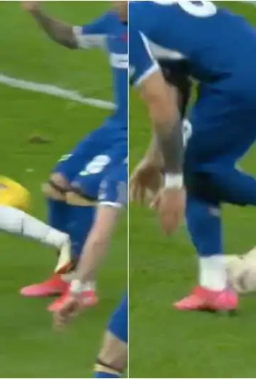 El defensor del Tottenham le fue con todo al mediocampista del Chelsea y vio la tarjeta roja por esa tremenda patada, que además, terminó en penal para el Chelsea.