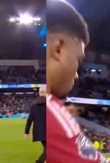 GESTO DE RESPETO: Amad Diallo marcó el gol del triunfo vs. Manchester City y post partido fue directo a saludar a Pep Guardiola.