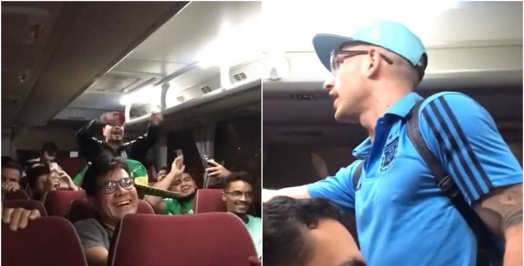 Los cánticos parecen ser lo más livianito de este excesivo folklore futbolero, aunque en ocasiones, duelen más que un golpe de puño. Así fue para este argentino, que en un micro repleto de mexicanos, debió escuchar los cánticos contra su país, hasta que le entonaron una canción que no le gustó nada.