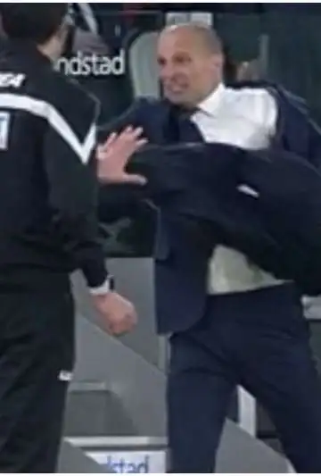Allegri explotó por la decisión arbitral y tiró la campera entre varios insultos. El cuarto arbitro del encuentro, buscó calmar las aguas, pero no logró frenar el enojo del italiano.