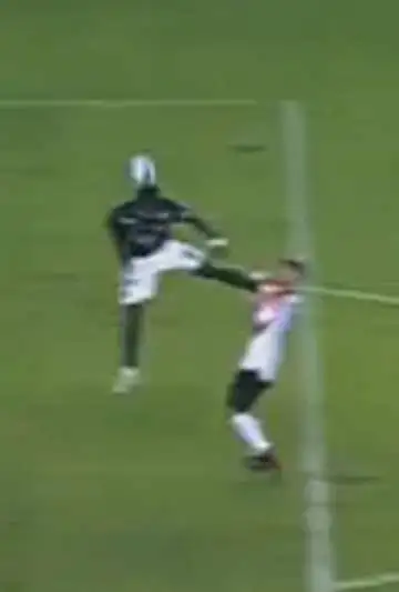 La primera expulsión tuvo como protagonista a Carlos Lucumí, delantero que se despachó con un tremendo planchazo en la cara de Leonel Galeano: saltó y le metió una dura patada al defensor.