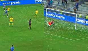 Bryan Carabalí remató desde fuera del área y desde una zona muy compleja para poner el 1-0 ante Defensa y Justicia en el amanecer del partido.