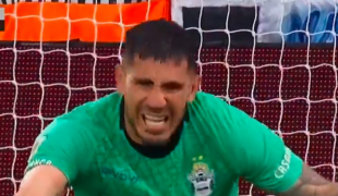 El arquero de Gimnasia y Esgrima de La Plata voló para sacar un remate con claro destino de gol para Colón.